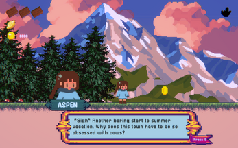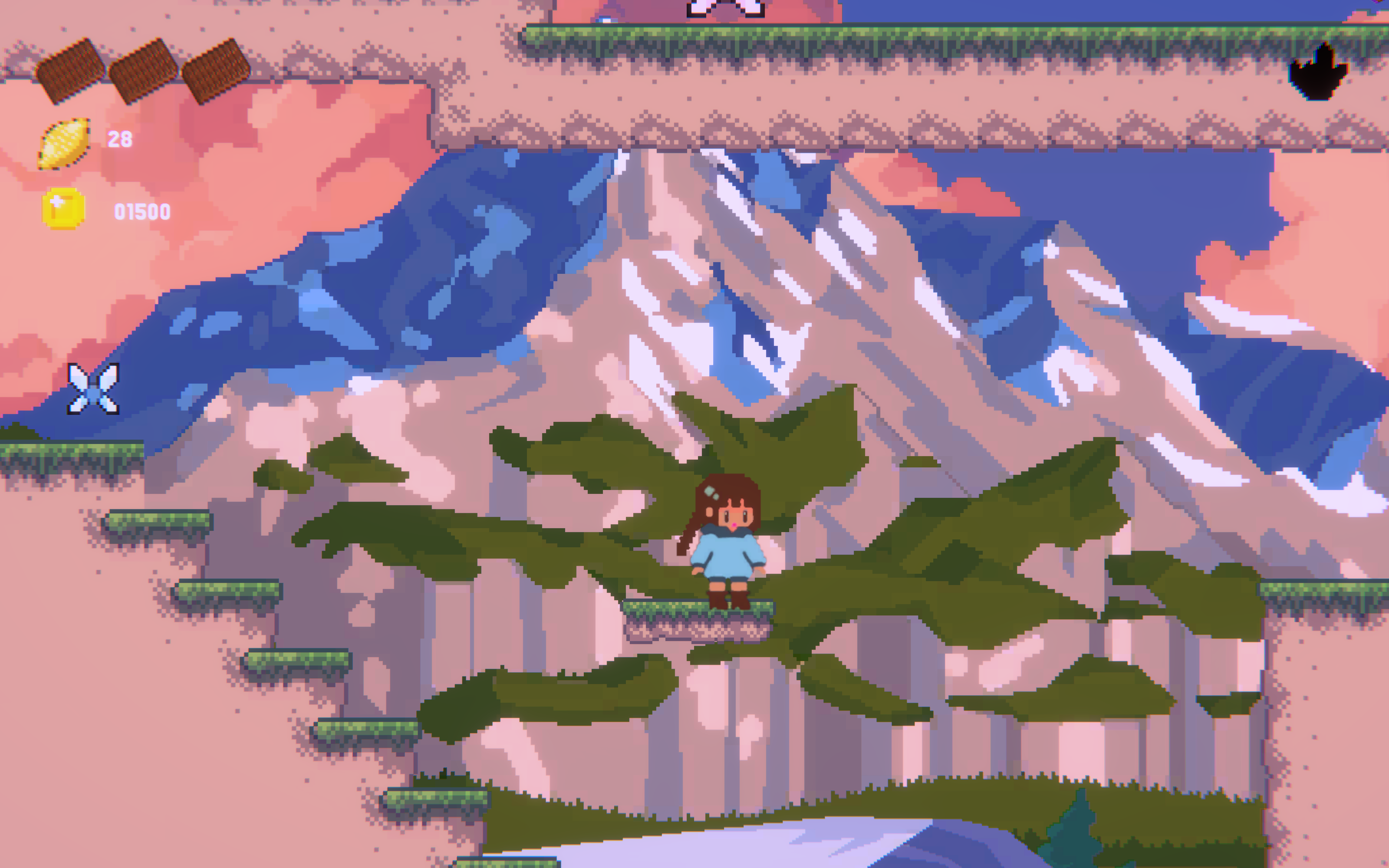 Indigo Ridge is a short cozy 2D pixel art platformer set in the Rocky Mountains! On the first day of summer break, Aspen goes exploring in the mountains, only to find that something isn't quite right this time. Fight fairies with the power of lemons and platform your way through Indigo Ridge to reach The Clearing and save the town from devastation! Created for DIG3713 at the UF Digital Worlds Institute.
